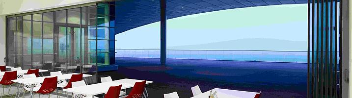 Our frameless folding doors can be reduced down to a large window size and offer excellent weathering. They are ideal for seafront hotels, apartments and offices.