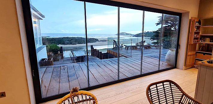 Transform your coastal property with our ultra-slim sliding glass system, offering uninterrupted views across Bigbury's stunning beach and headland.