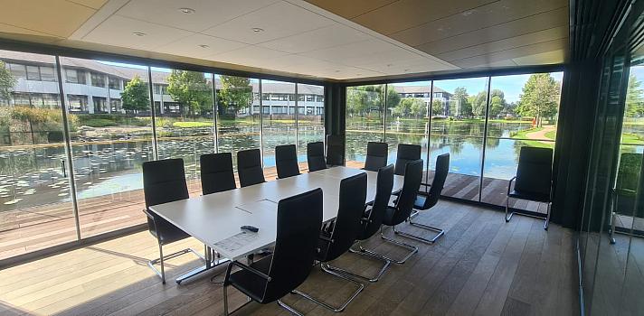 Transform your corporate meetings with our frameless glass system, creating an inspiring workspace overlooking tranquil water views.