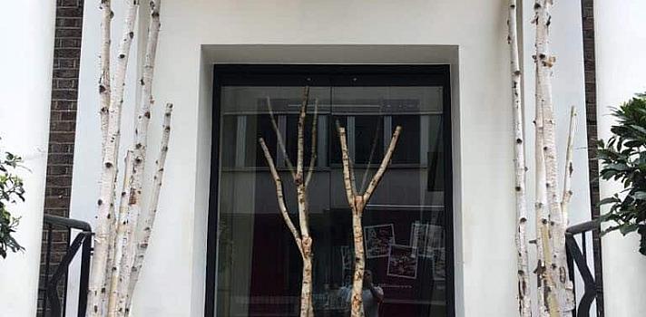 The standout feature is the bespoke wooden branch design handles, fitted back-to-back on both sides of the doors, creating a unique visual element that complements the restaurant's natural-inspired branding.