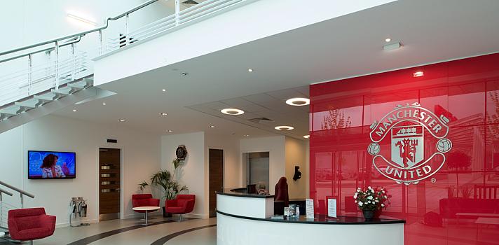 Striking commercial installation transforms Manchester United's Training Ground dining area with a fourteen-panel frameless system, maximising space flexibility and modern aesthetics.