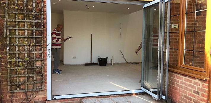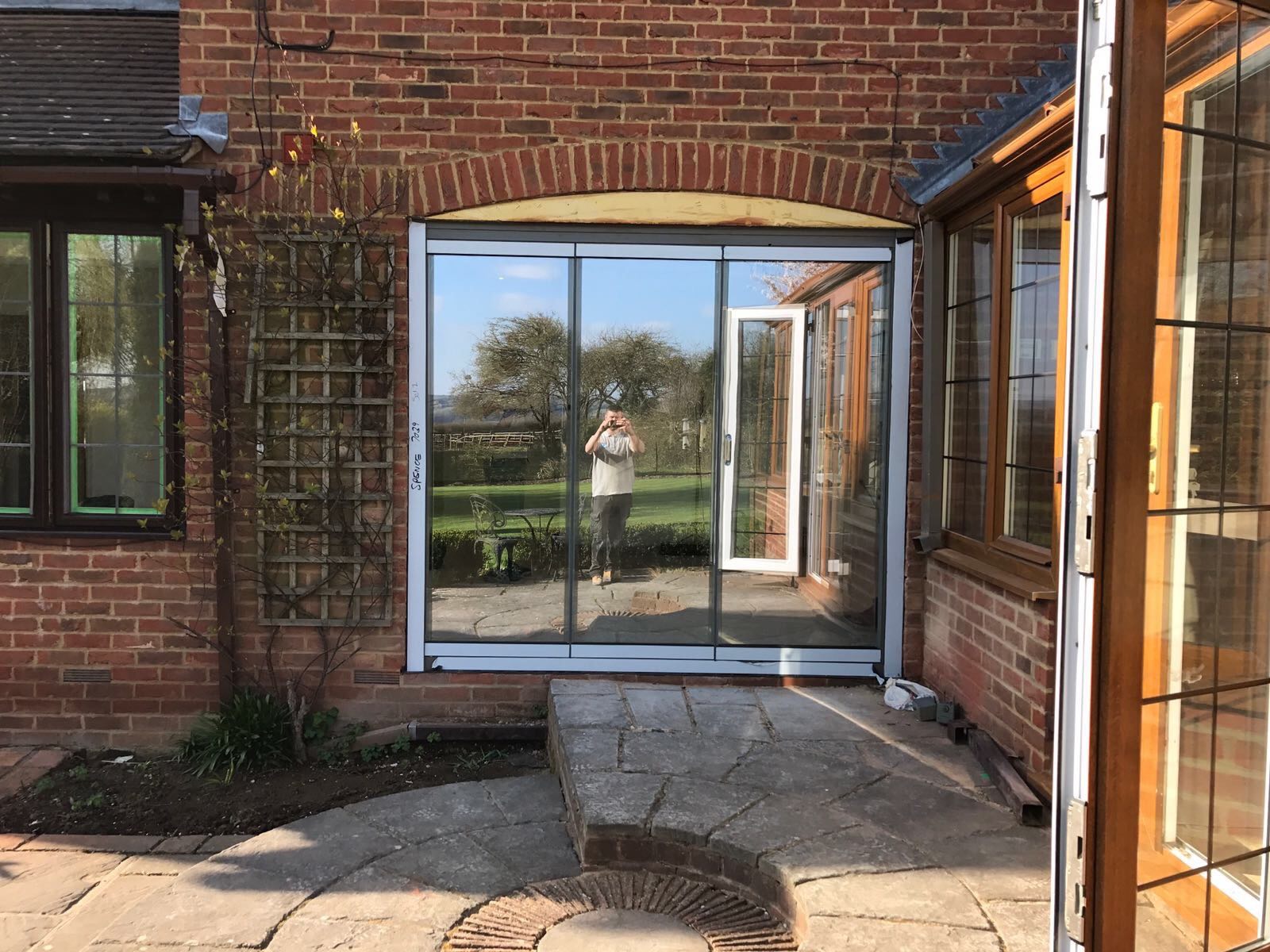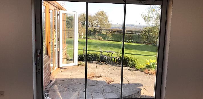 An excellent example of how our frameless slide and fold doors work both as full slide and fold door as well as ideal for smaller structural openings. The smaller door set works equally well as a single door and side panel, converting to both doors opening when required.