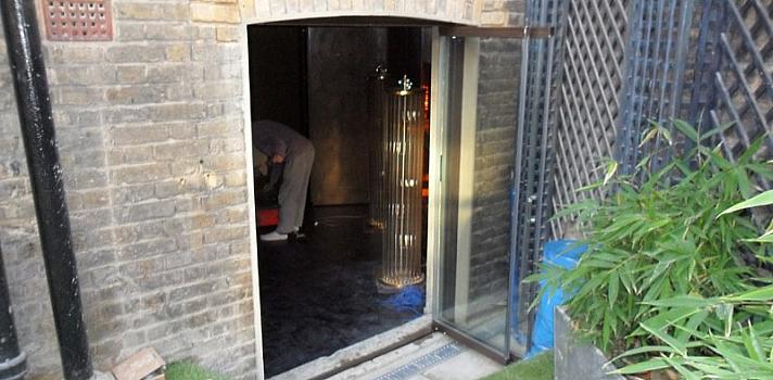 - Doors open out, slide to the right viewed from the outside.