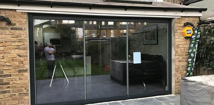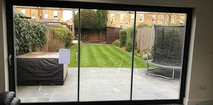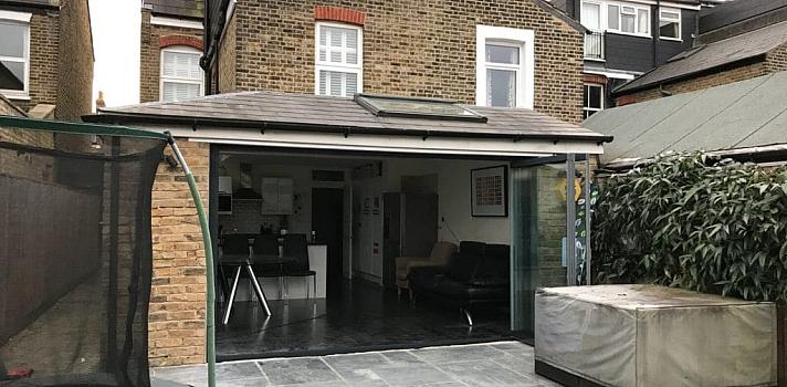 London SW19 installation of frameless slide and fold doors to this traditional property with a new kitchen/living extension. The doors are installed into an existing opening where the previous patio doors were removed to make way for our frameless doors.