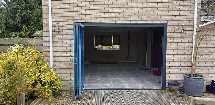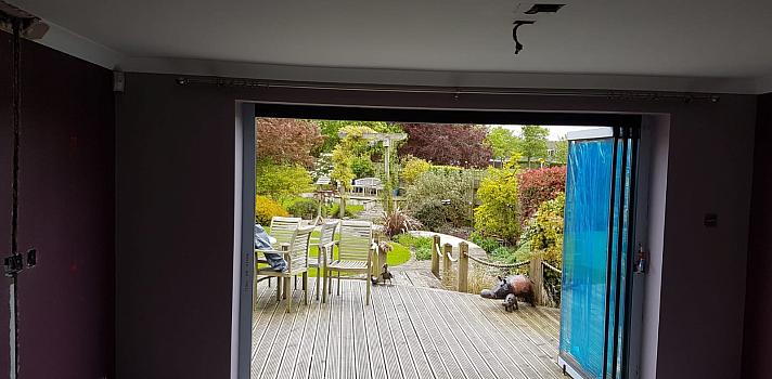A 3-panel set of frameless slide and fold doors fitted to a recently constructed property in Northampton. The doors open outwards and feature a low threshold that meets the inner floor and external decking. With an open out configuration, the doors slide and stack on the one side. Also fitted to the doors are our stainless steel door holders, designed to offer added convenience with a modern touch.