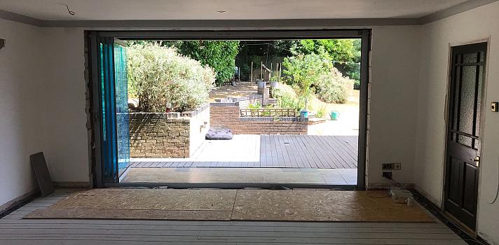 A Nottinghamshire property with a renovation at the back of the house now with a four panel set of our frameless slide and fold doors.