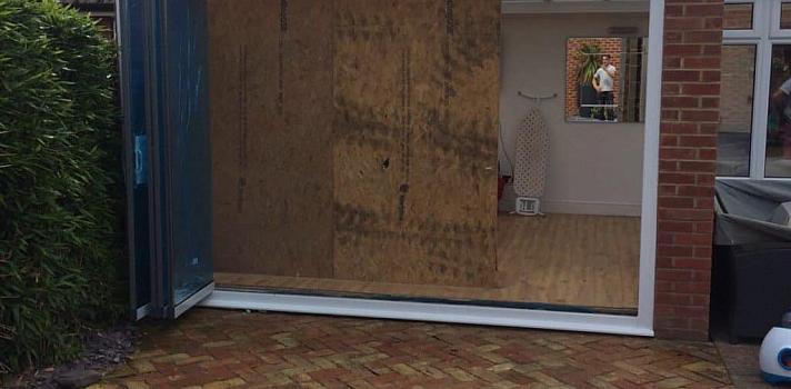 - West Malling, Kent installation of frameless double glazed doors to conservatory.