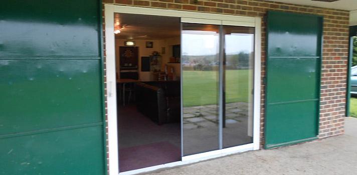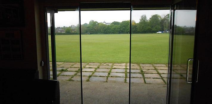 - 3-Panel frameless doors to cricket club.