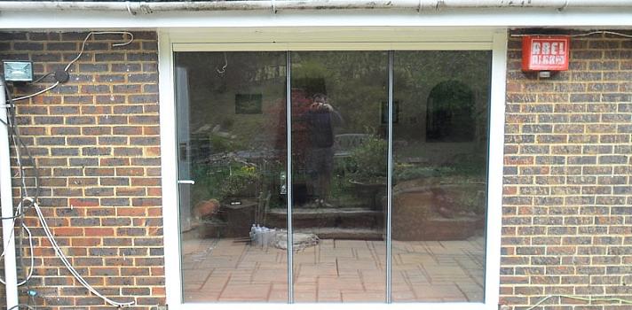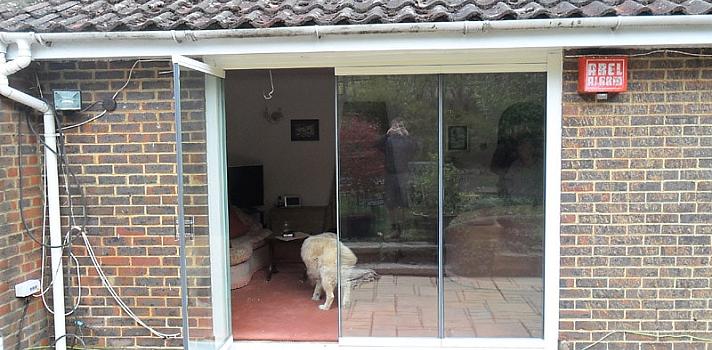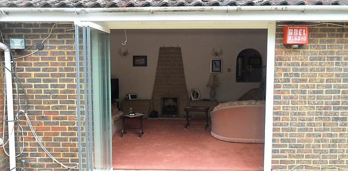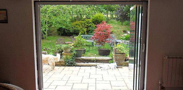 - 3-panel white slide and fold doors fitted to a new extension and new structural opening.