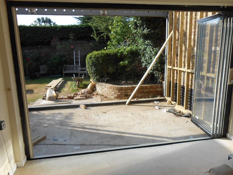 - 4-Panel slide and fold doors to new extension.