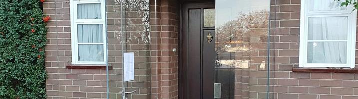 First of all, the construction of an all-glass or frameless porch differs from traditional framed models. A upvc, aluminium or wood porch relies on the frame for its strength. A glass construction uses laminated or toughened glass fixed to minimal fittings and the smallest possible frame, depending on the design.