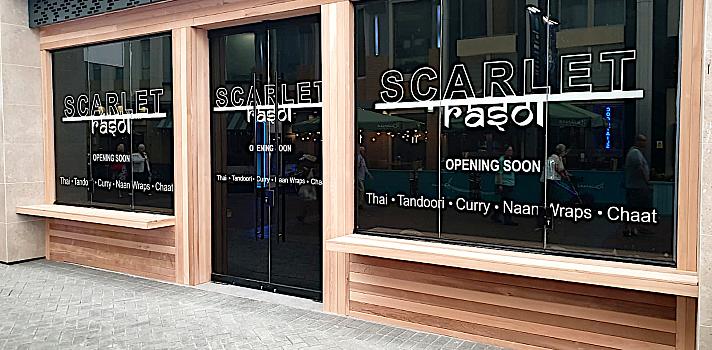 Sleek frameless commercial windows installed at the O2 Arena's Scarlett restaurant, maximising visibility and creating an inviting contemporary dining atmosphere.